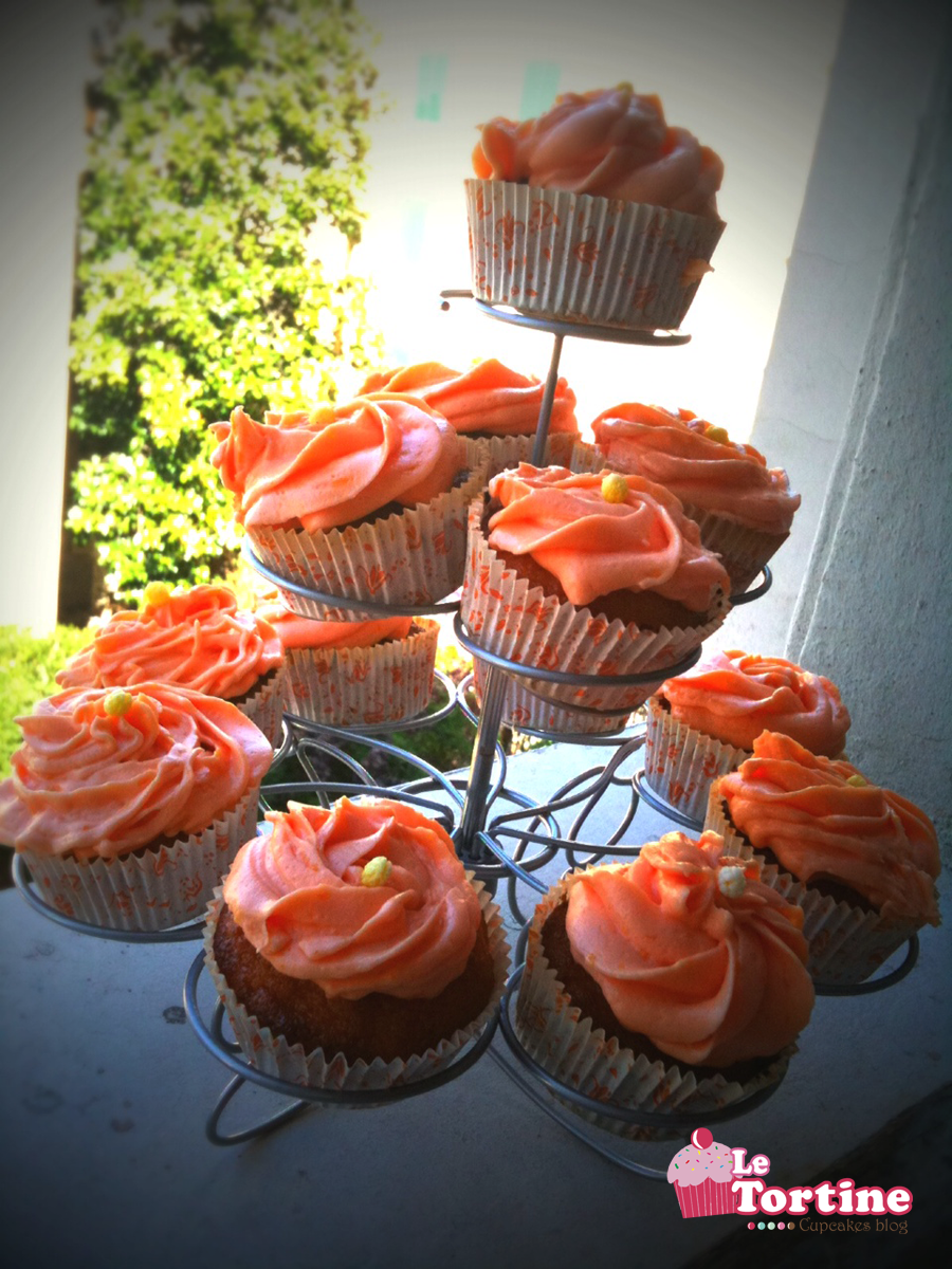 Trovate la ricetta del frosting qui, dovete solo sostituire al miele la scorza grattugiata di un’arancia e di un limone! Anche in questo caso il profumo e il sapore sono assicurati, senza neanche un goccio di aromi artificiali! Per dare un colore arancione al mio frosting, ho aggiunto qualche goccia di colorante alimentare giallo e giusto 4/5 gocce di colorante rosso.