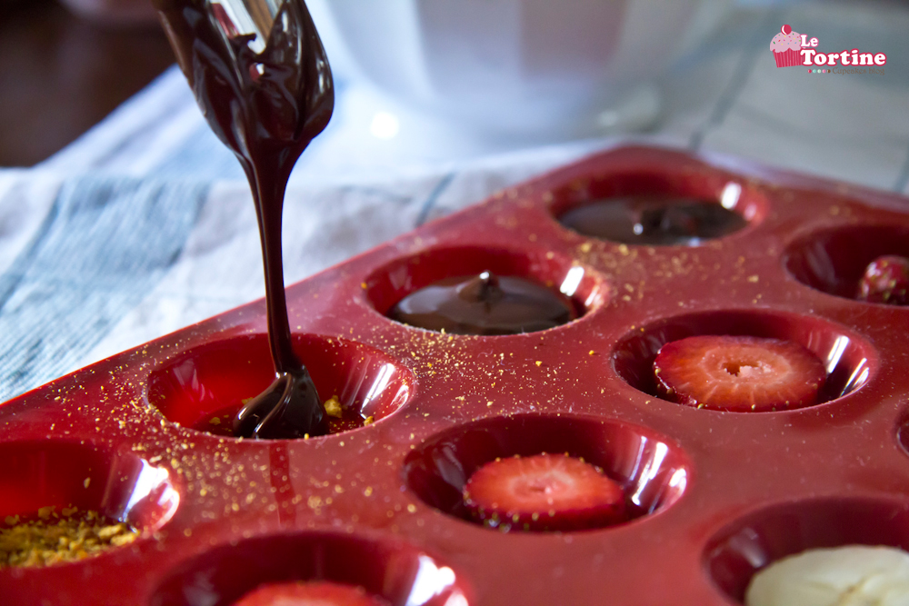 Quando il cioccolato sarà completamente sciolto, lasciatelo colare negli stampini, ricoprendo bene la frutta e fatelo raffreddare in freeezer per almeno 15/20 minuti. Nel frattempo preparate i muffin…
