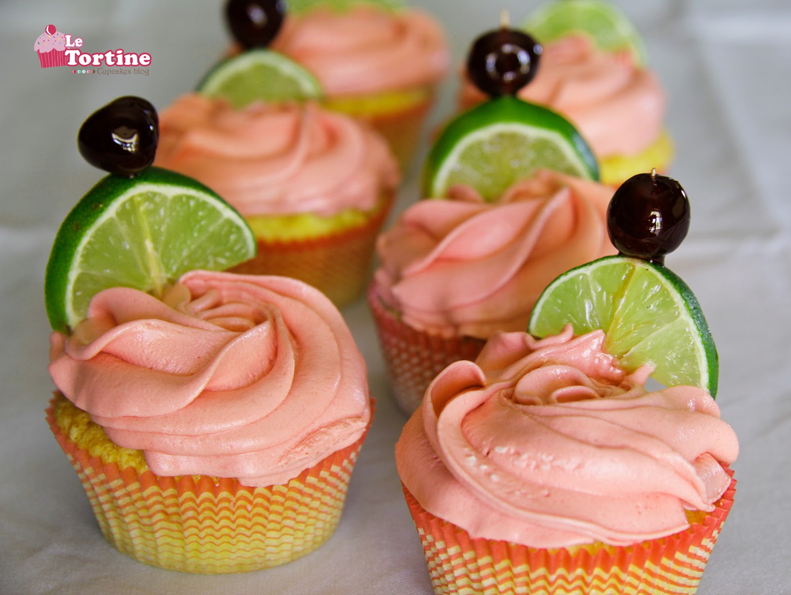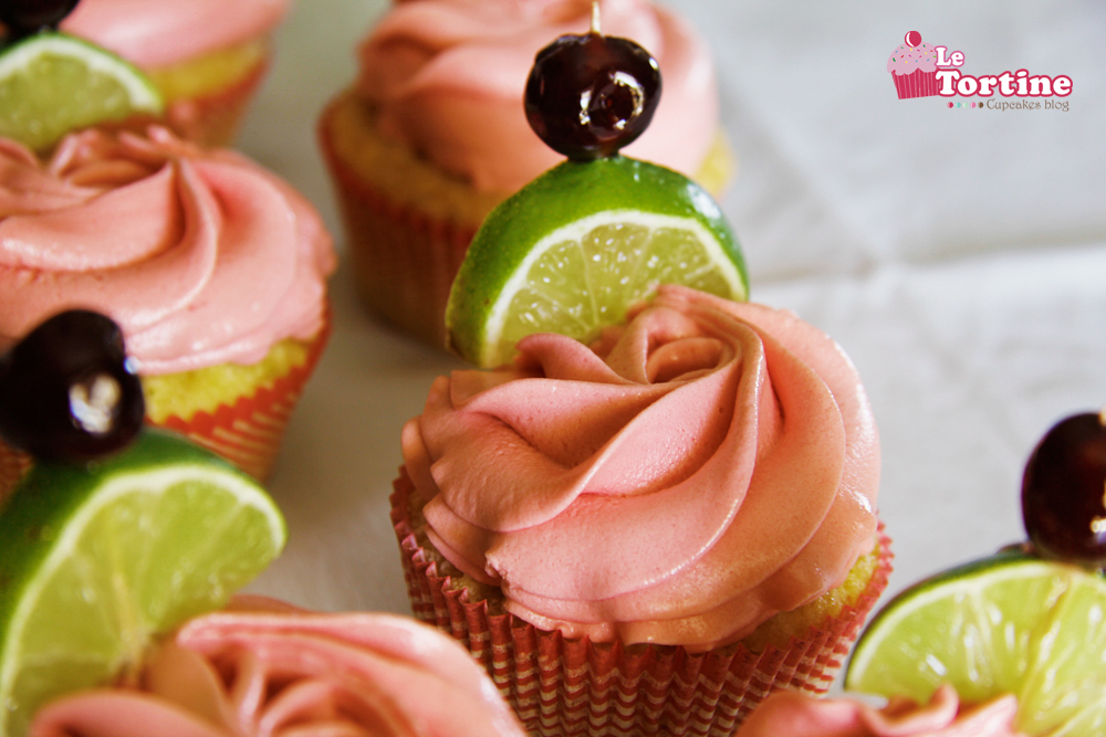 Quando avrete frostato le tortine potete decorarle con una fetta di lime e un’amarena (ho fatto una ricerca e pare che sia la decorazione più usata per questo tipo di cocktail, anche se spesso si usa come variante una ciliegia o un lampone).