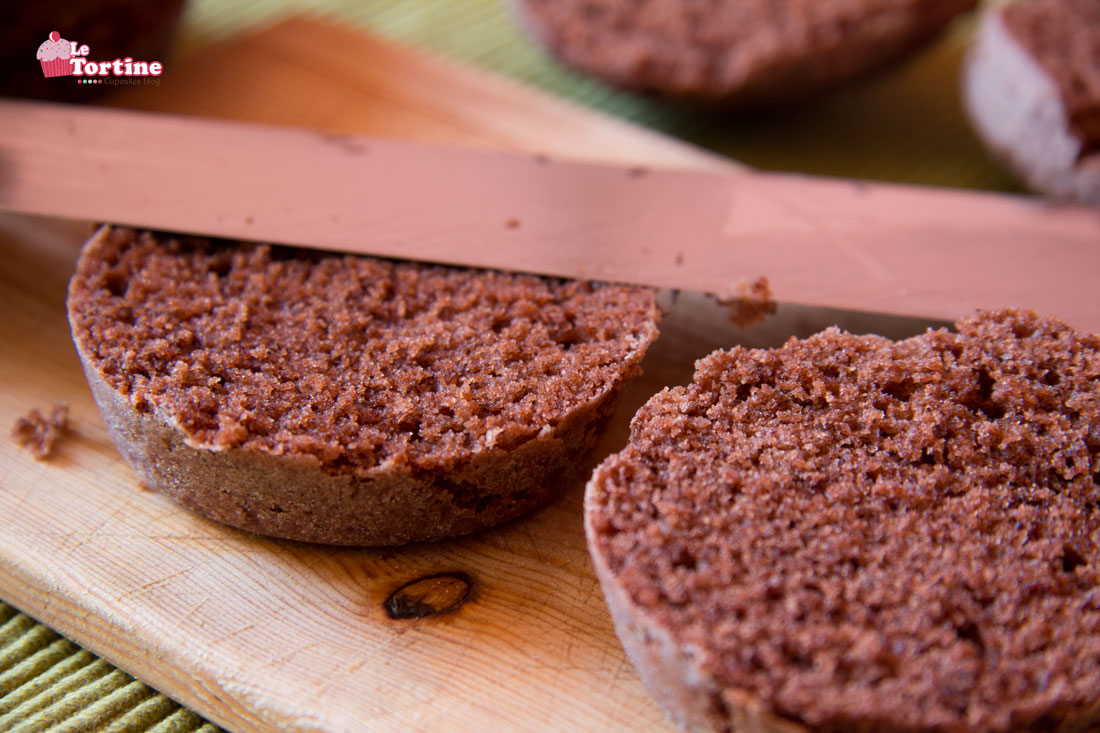 Step 5. A questo punto le vostre tortine saranno già fredde e si toglieranno senza rischi dalla teglia. Tagliatele in due parti, come vedete in foto.