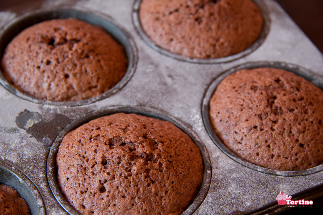 Step 1. Preparate delle cupcakes al cioccolato, trovate la ricetta qui, ma non usate il brandy nell’impasto. Queste tortine devono essere perfette anche per i bambini!