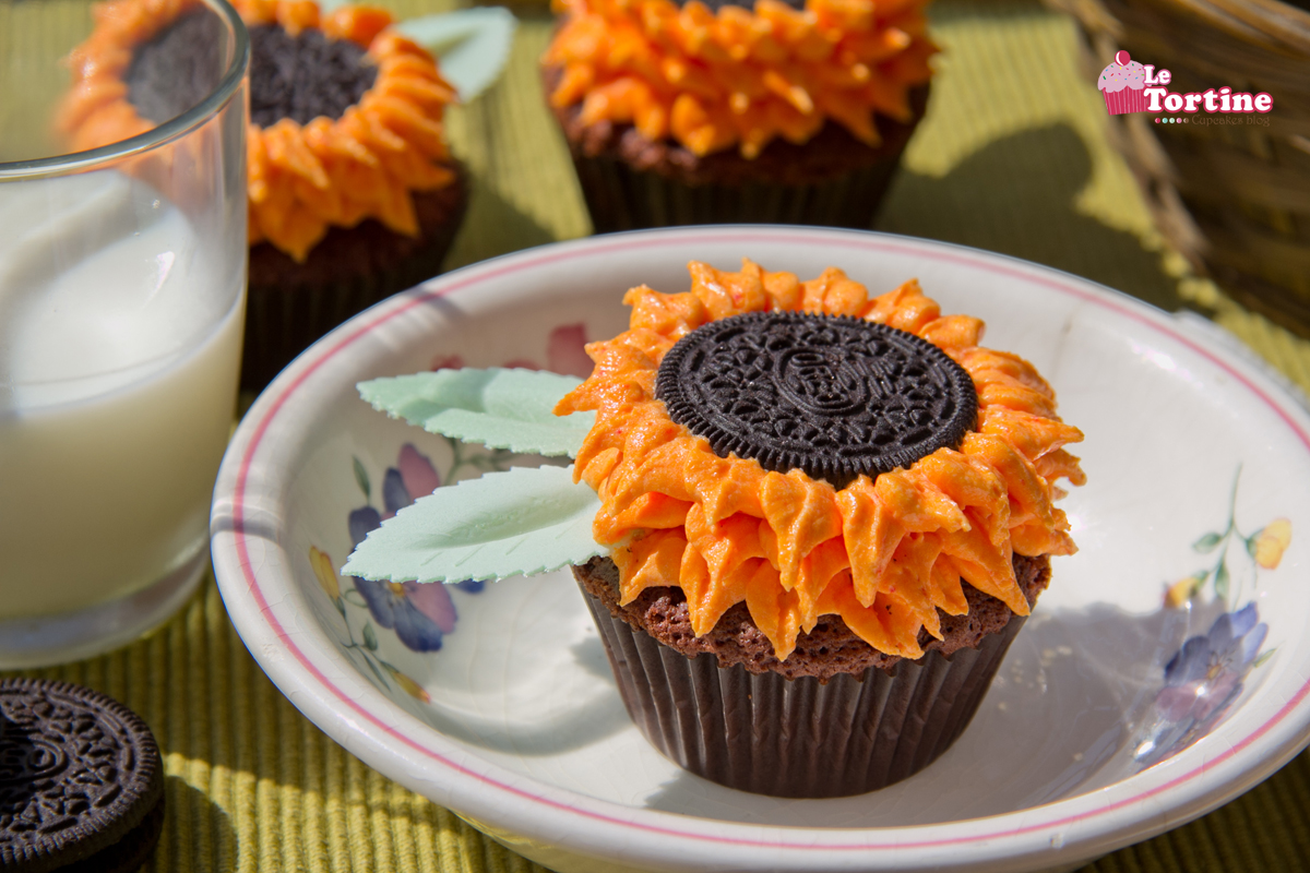 Qual è il fiore simbolo dell’estate? Di certo il girasole! Per festeggiare il Ferragosto 2012 ho pensato di portare in tavola queste Cupcakes Girasole realizzate con un impasto base al cacao, il disco centrale con un Oreo e i petali con del buttercream arancione. Il risultato è splendido e vi assicurerà un gran bel figurone con gli ospiti! Vediamo insieme come realizzare queste cupcakes così speciali; per l’occasione ho anche realizzato una videoricetta che troverete alla fine del post e sul canale YouTube de Le Tortine!
