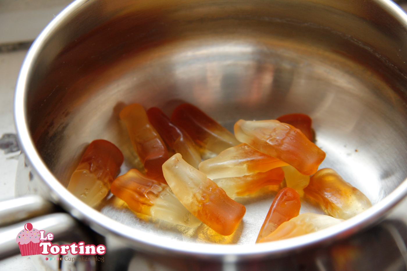 2. Sciogliere in un pentolino le gommose alla cola.