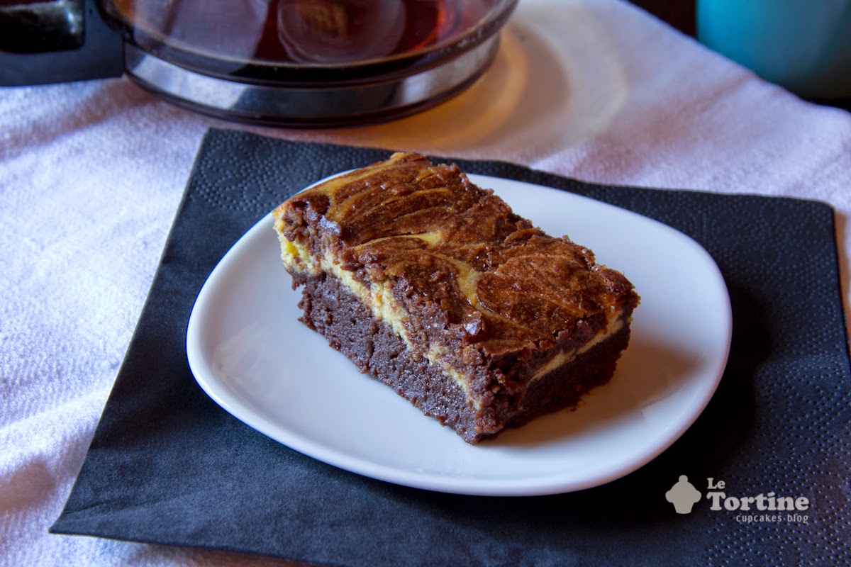 Comincia a fare troppo caldo per tenere nascoste in giro tavolette di cioccolata per quei raptus improvvisi di “voglia di dolce”. Usiamole per preparare questi squisiti brownies, resi ancora più golosi da una crema bianca al formaggio. E’ un dolce perfetto per la colazione, al pomeriggio, a mezzanotte, insomma sempre! Conservateli in frigo, ma lasciate che tornino a temperatura ambiente prima di mangiarli.