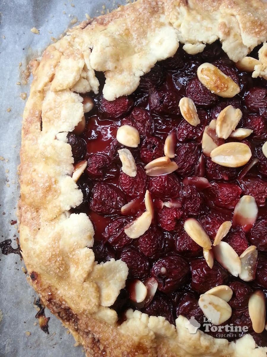 Aggiungete le mandorle a lamelle e cospargete le ciliegie di zucchero di canna nella quantità che preferite. Ora con delicatezza richiudete i bordi della galette e spennellateli con panna liquida cospargendoli di zucchero di canna, così facendo in forno diventeranno fragranti, dorati e deliziosi.