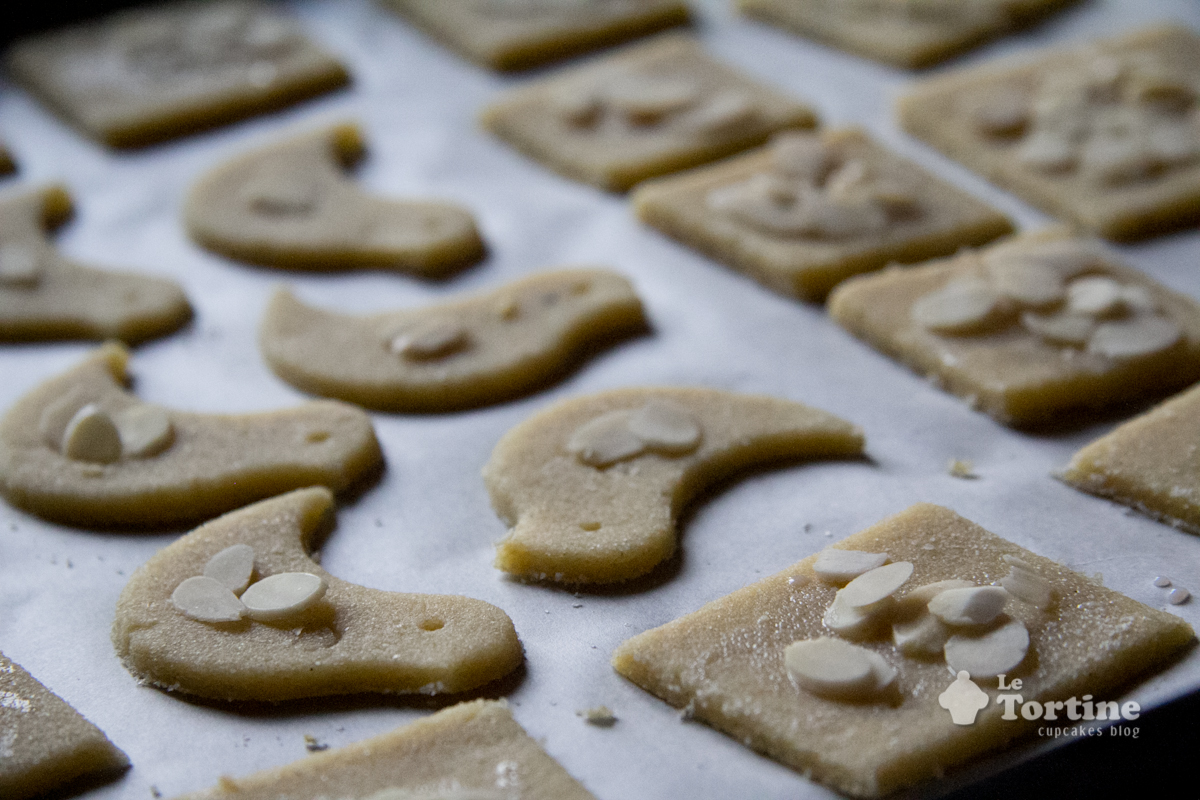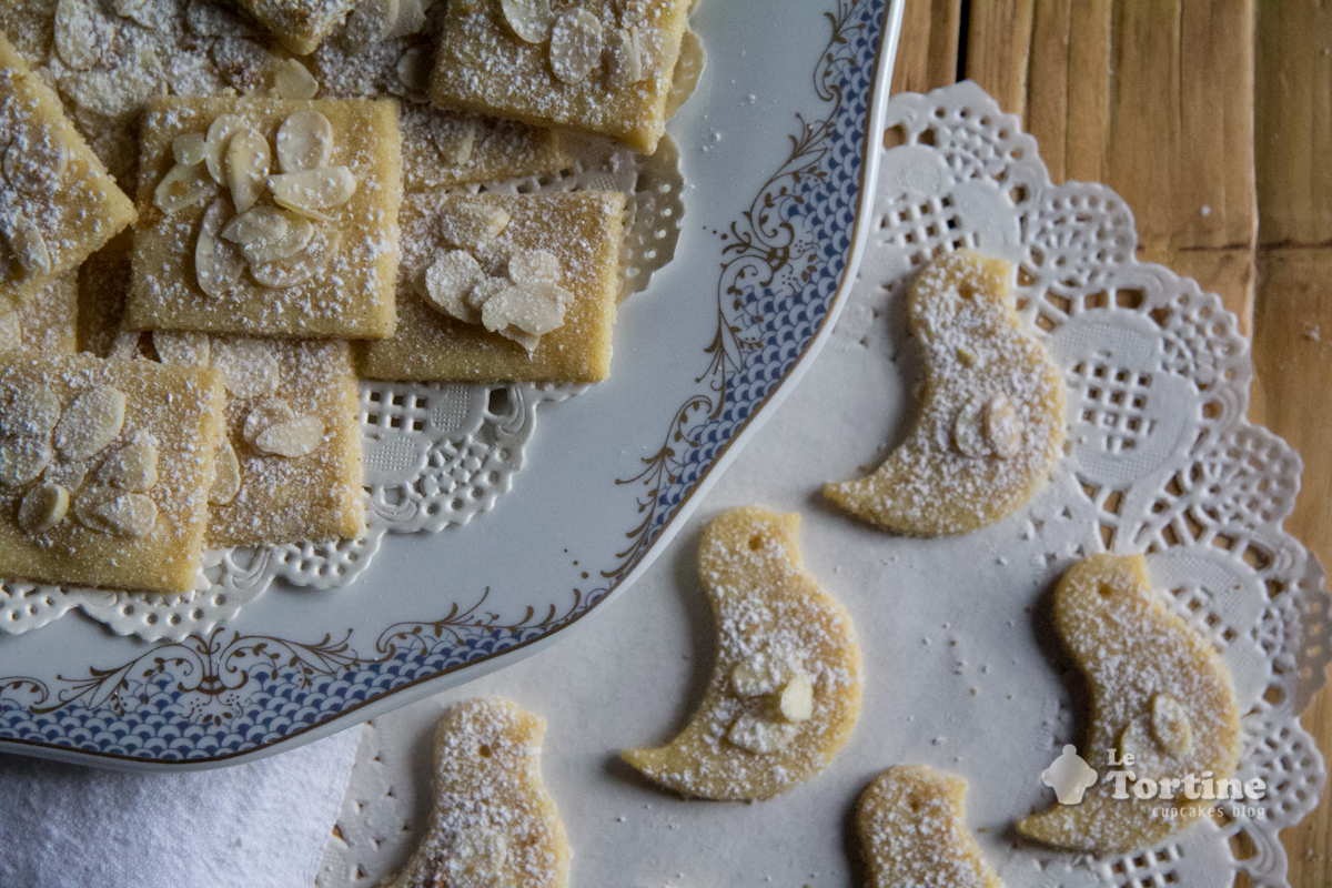Tra i pranzi faraonici che vi aspettano lasciate un posticino libero per affiancare il tè delle cinque a questi biscotti burrosi e delicati. Ho scelto di tagliarli a mano in quadrati piuttosto irregolari e di decorarli con mandorle a fette e una generosa spolverata di zucchero a velo, e non mi sbagliavo, sono ottimi. Aromatizzateli con i semini di una bacca di vaniglia e usate un tè nero semplice da profumare con una fetta di limone.