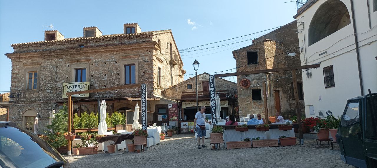 La storia del borgo e dei popoli del Mediterraneo si intrecciano sui muri, alcuni ristrutturati, alcuni cadenti, come fossero pietre d’inciampo presenti vistosamente per non dimenticare o per spingere il visitatore a saperne di più.